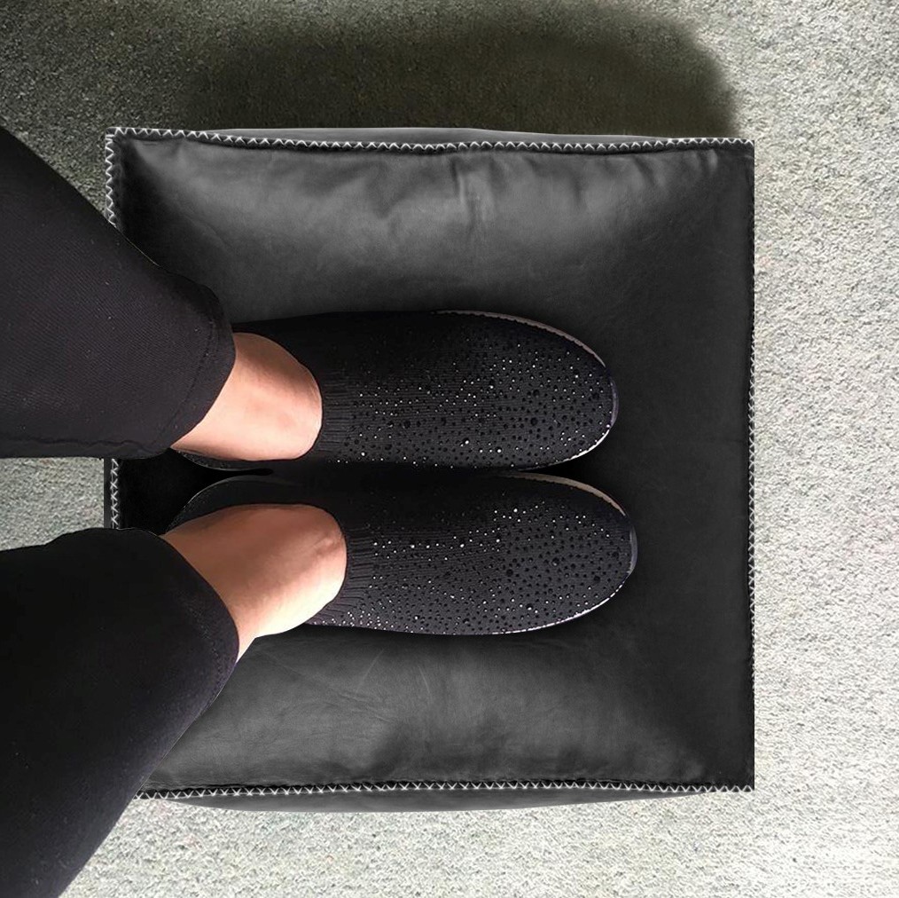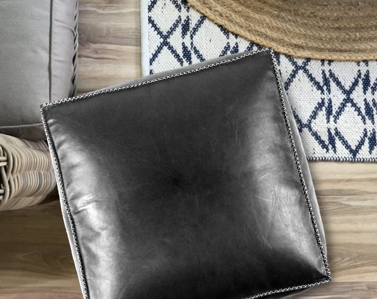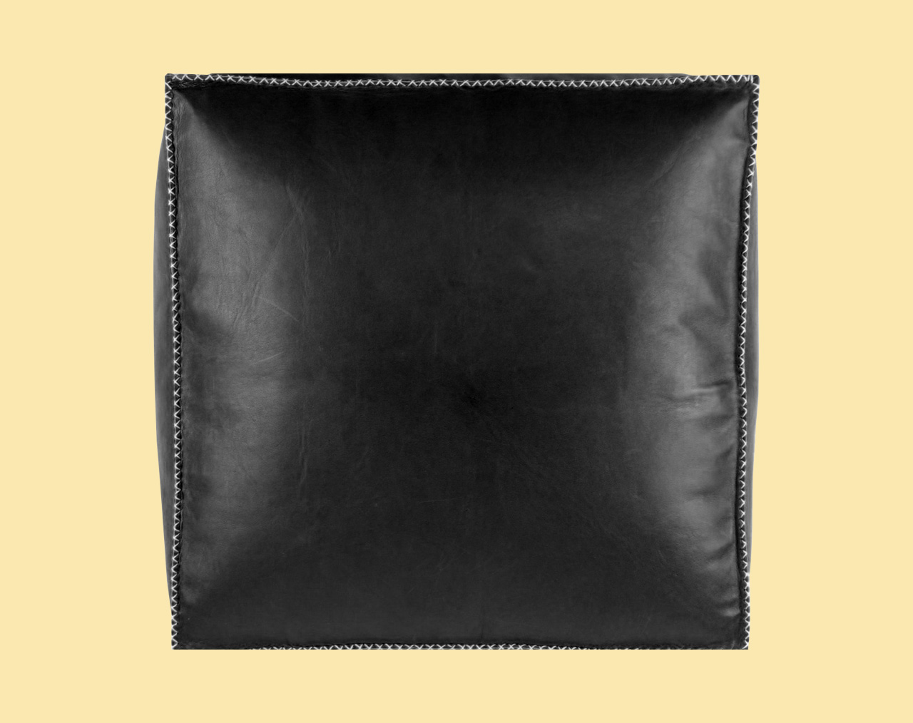 Black Leather Pouf